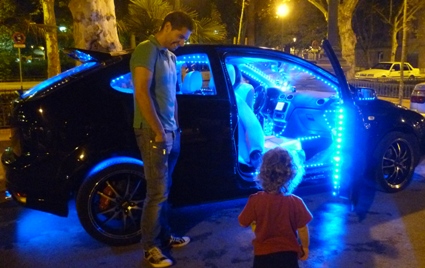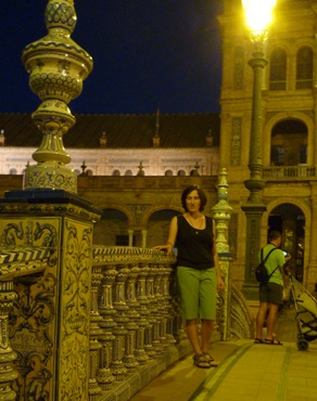 Comunicamos por SKYPE. Cintia me invitó a visitarles en Sevilla. Mi habitación era muy acogedora y cómoda. El frigorífico estaba llena de cosas maravillas para comer. Cocinamos. Jugamos con la hermana de David y su familia encantadora. Montamos en bicis. Cenamos en una bodega de aceite de oliva convertida en bar que servía tapas sabrosas. Visitamos Sevilla por la noche para ver donde Padme y Anakin Skywalker se enamoraron y donde Yona se enamoró de un coche espectacuar llena de música y luces.